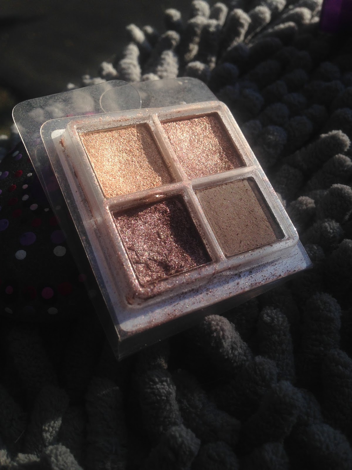 So for this look I used most drugstore products with some higher end. All the shadows on my eyes are Coastal Scents, Inspr, and Ulta. The Coastal Scents shadows from a Birchbox sample, so I'm not sure of the names, I'll throw in a picture of the shadows from them. For my face makeup, I used a sample of Cover FX Natural Finish Oil Free Foundation and set that with E.L.F's translucent powder. (I know I know, the picture shows Hard Candy's foundation, I changed my mind at the last second.)